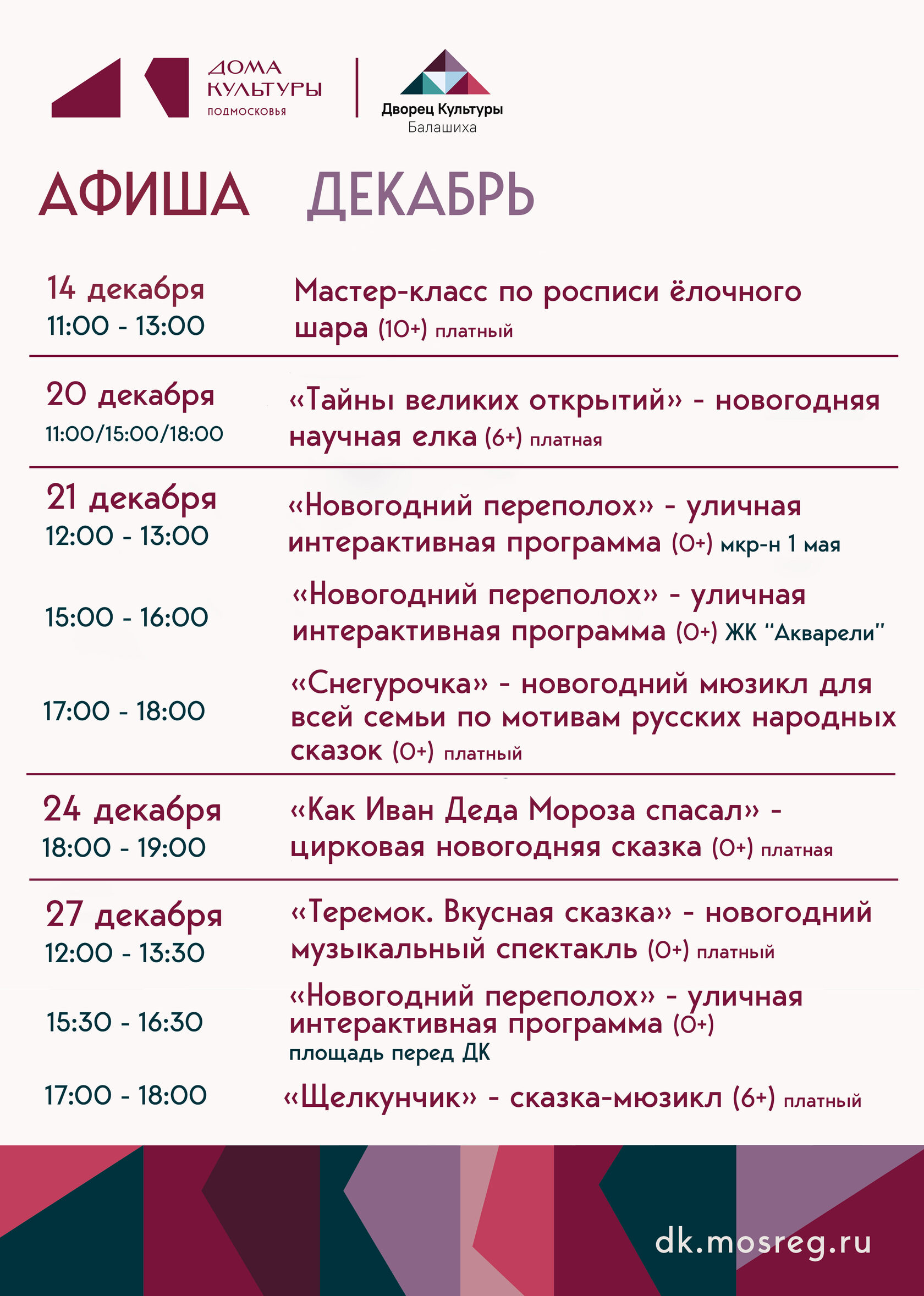 БЕСПЛАТНЫЕ МЕРОПРИЯТИЯ ДК